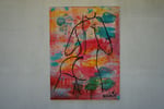 Acrylic on canvas, 30 x 40 inches (76 x 101.5 cm). Painted using the artist’s own body as a tool, with a silhouette drawn in a single, unbroken line. The vibrant, textured background contrasts with the fluid black stroke, merging physical presence and abstract expression.