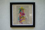 Papier recyclé fait à la main avec retailles de crayons et fleurs séchées, peint à l’aquarelle et encadré. Cette œuvre est une ode délicate à la nature, mêlant textures organiques et pigments doux pour rendre hommage à ce qui est peut-être la plus belle création sur terre — une femme. Sa silhouette, peinte de couleurs vibrantes et fluides, porte à la fois la force et la fragilité de la nature, capturant un sentiment de liberté, d’intemporalité et de vitalité silencieuse.