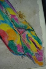 Handmade recycled paper crafted with pencil shavings and dried flowers, painted in watercolor and framed. This piece is a delicate ode to nature, intertwining organic textures with soft pigments to honor what is, perhaps, the most beautiful creation on earth — a woman. Her form, rendered in vibrant, flowing colors, carries both the strength and fragility of nature itself, capturing a sense of freedom, timelessness, and quiet vitality.